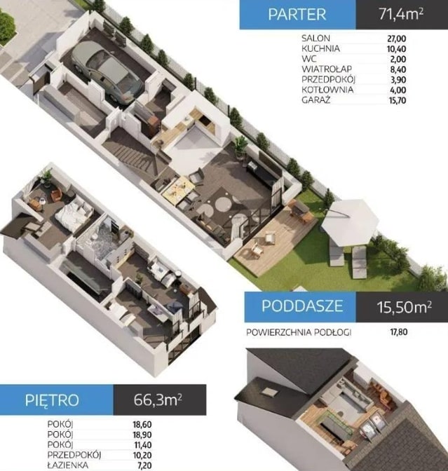 - poddasze: użytkowe