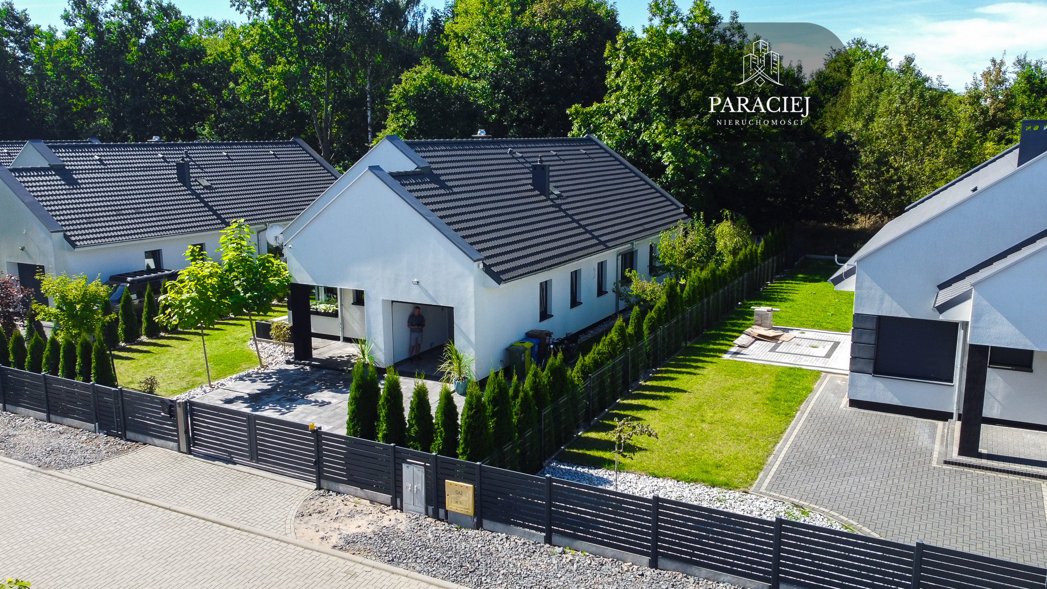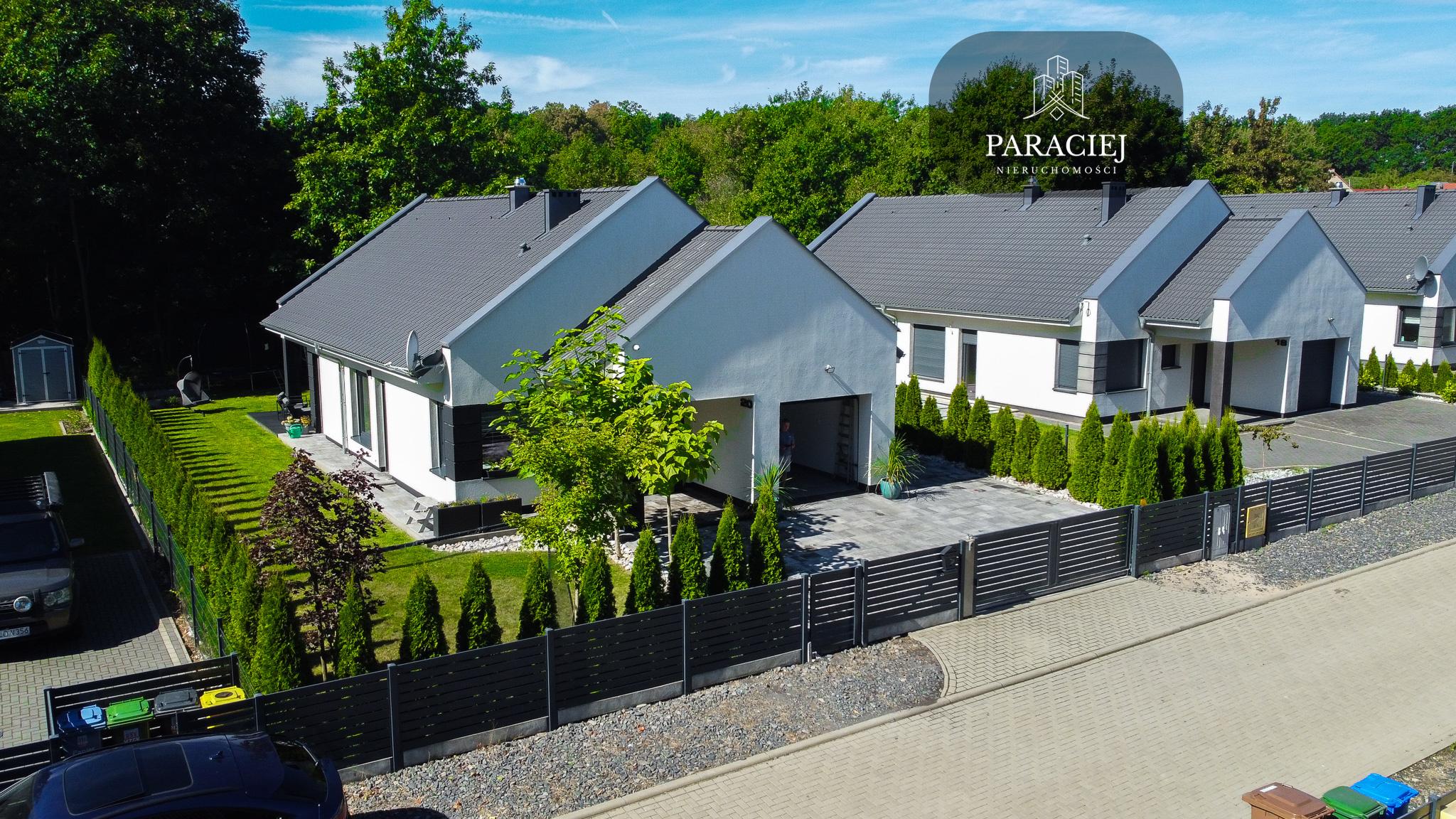 - Zewnętrzne kamery i automatyczna brama na pilota.