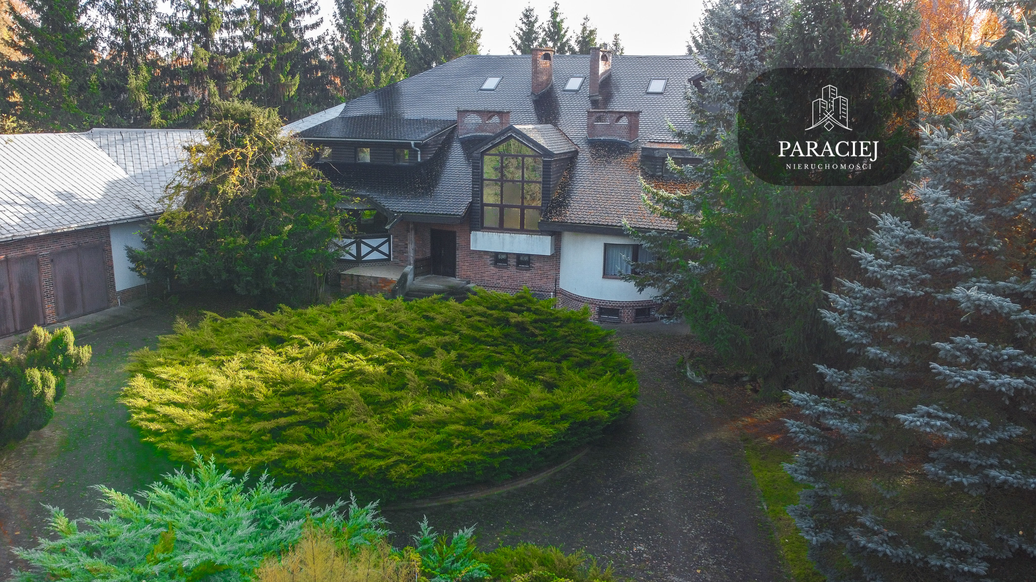 To niezwykła posiadłość o powierzchni 487,5 m², położona na malowniczej działce 12 045 m², otoczonej drzewami, krzewami, różanecznikami i jaśminami.