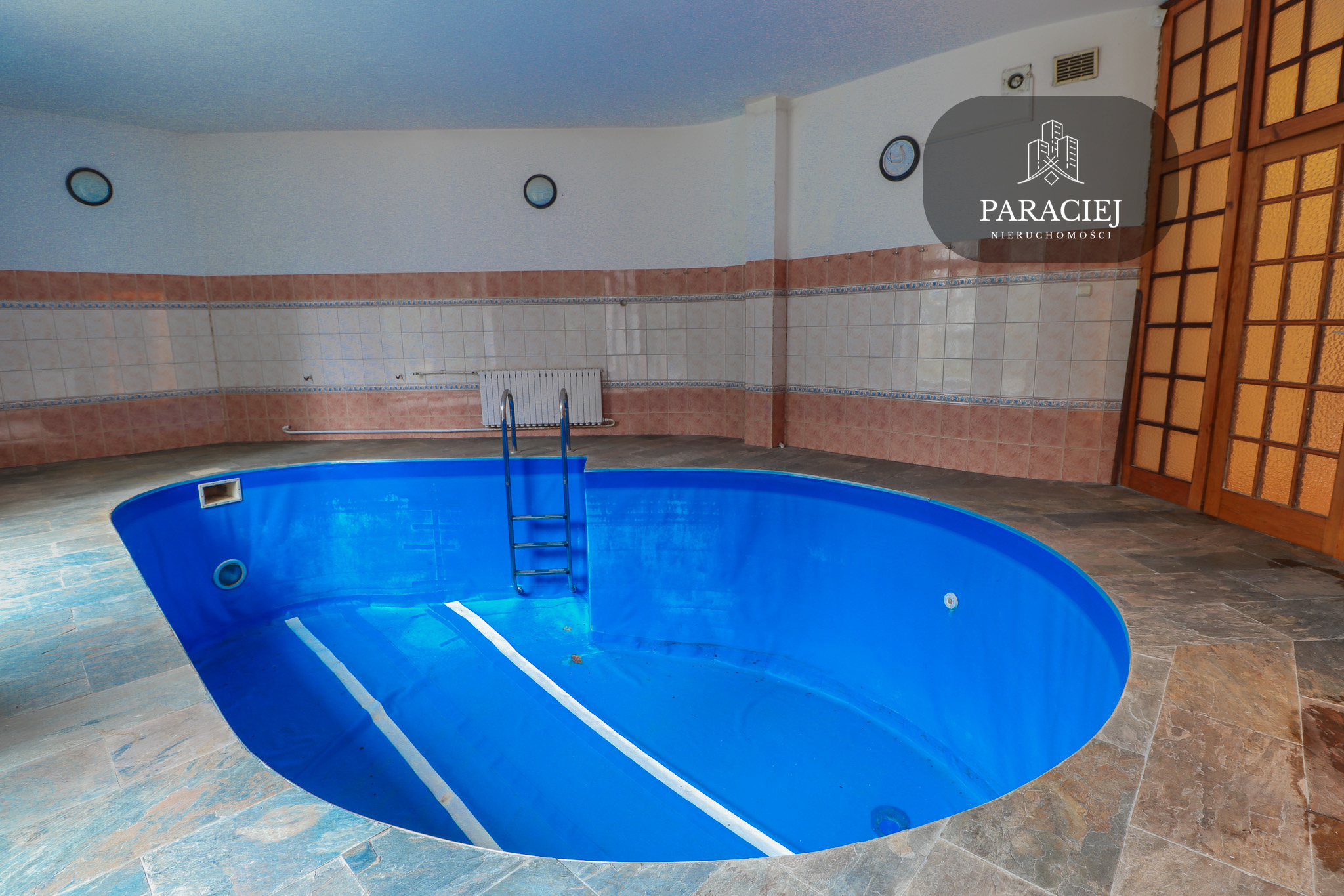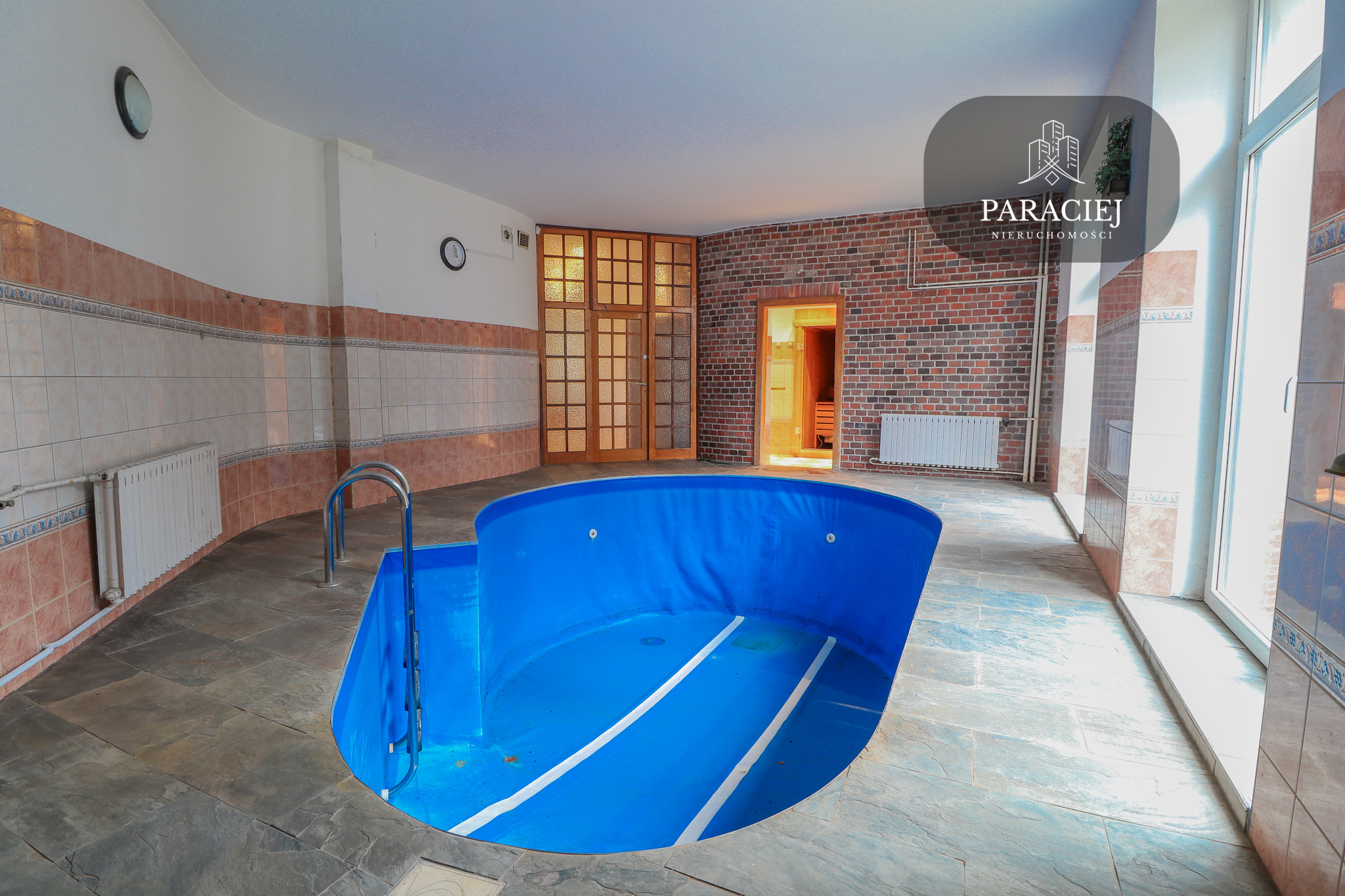 - imponująca strefa rekreacyjna – z basenem wewnętrznym, ogromnymi przeszkleniami i widokiem na ogród,